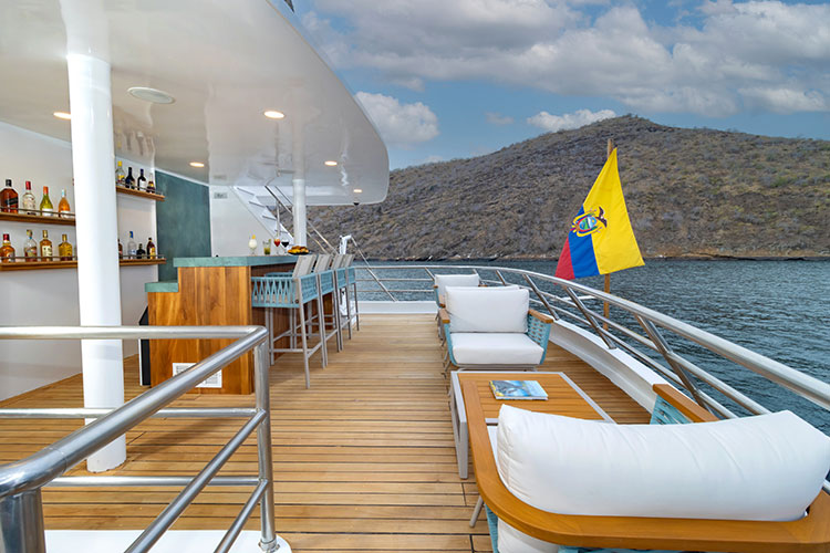 • 主甲板共有2间双人套房和2间大床套房。这些套房现配有阳台,客人可私享加拉帕戈斯群岛的景观。
